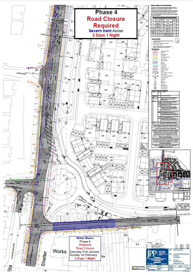 The road closures are to allow Severn Trent Water to make connections across the road to the new development site. They are set to take place over two weekends as follows:-