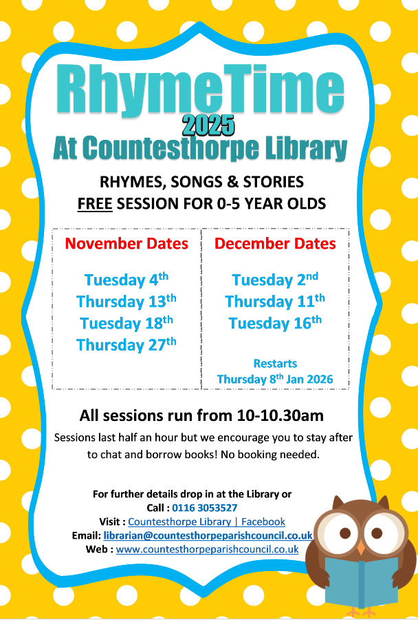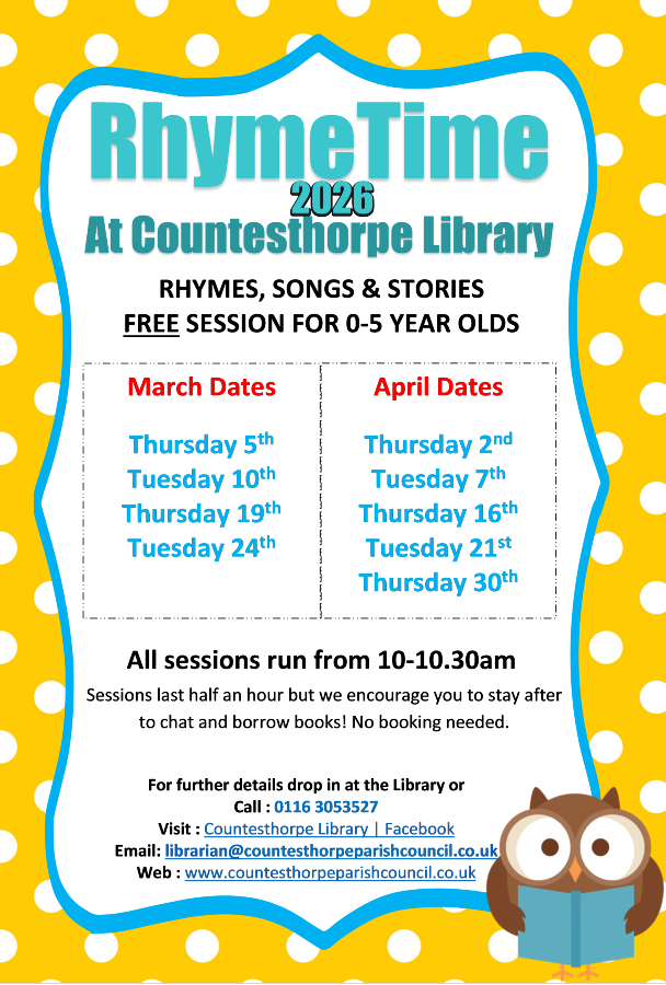Run by our Library Supervisor and a wonderful team of volunteers, Countesthorpe Library has thrived, and is working constantly to become a community hub for our village.